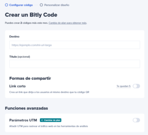Muchas están solamente disponibles para planes de pago, así que nuestro código QR va a ser más sencillito y, además, va a llevar el nombre de Bitly en pequeñito abajo a la derecha.